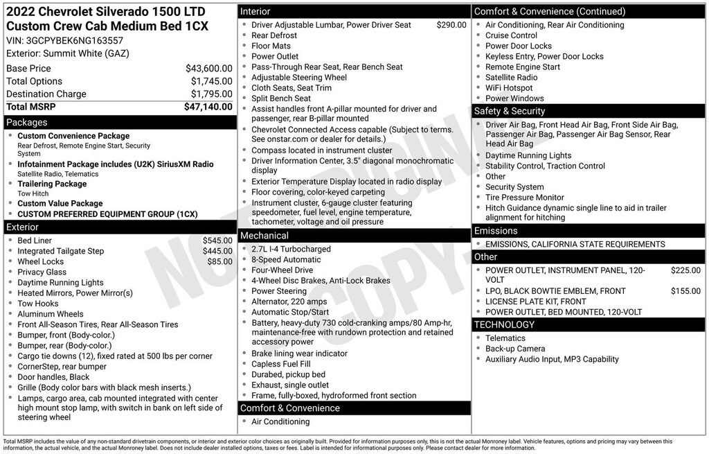 Chevrolet Certified Pre-Owned, 4WD LTD Custom, One Owner, Local Customer,Clean CARFAX. Certified. Summit White 2022 Chevrolet Silverado 1500 LTD Custom 4WD 8-Speed Automatic 2.7L Turbo Chevrolet Certified Pre-Owned Details: