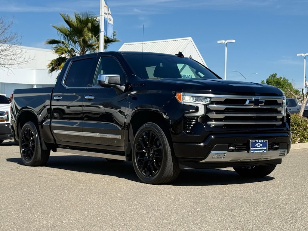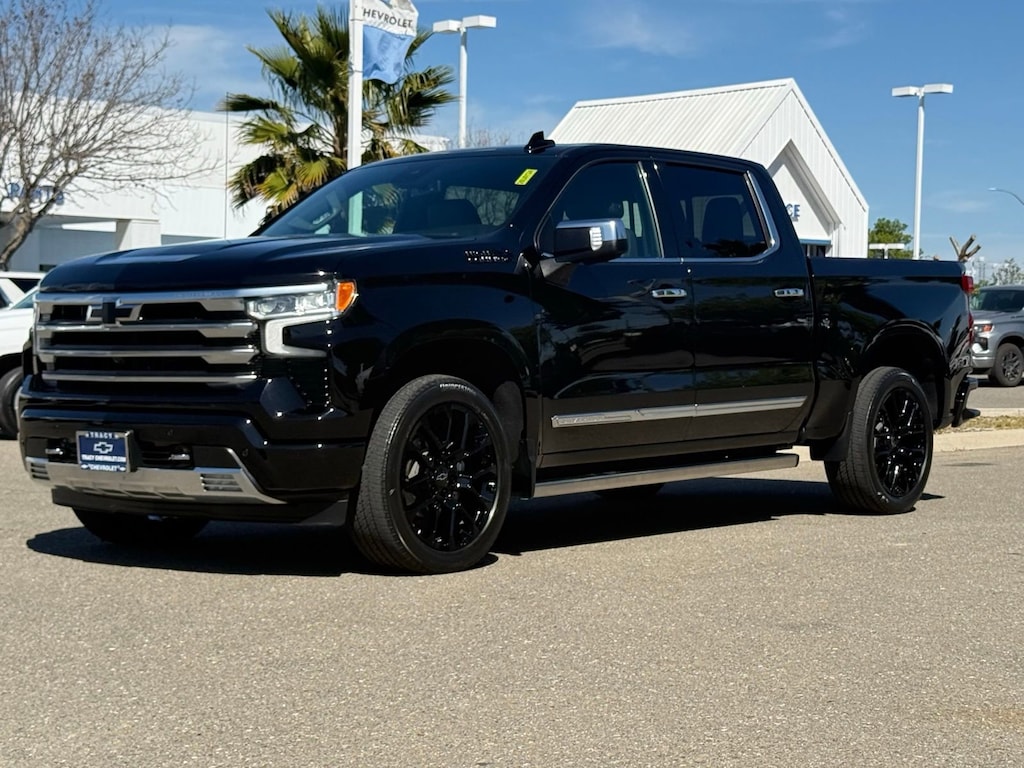 Chevrolet Certified Pre-Owned, 4WD High Country, New Tires, Non-Smoker, Clean Carfax, One-Owner, Loaded with 22 High Gloss Black Wheels, Power Retractable Assist Steps, Adaptive Ride Control, Suspension Dark. Essentials Package: Black Nameplates, Black Tailgate Lettering All-Weather Floor Liners, Chevy Safety Assist, Automatic Emergency Braking, Forward Collision Alert, Front Pedestrian Braking, Lane Keep Assist W/Lane Departure Warning, Following Distance Indicator, Intellibeam-Auto High Beam, HD Surround Vision & Bed View, Trailer Side Blind Zone Alert, Front & Rear Park Assist, Rear Cross Traffic Braking, Rear Pedestrian Alert, Safety Alert Seat Performance & Mecha, Chevrolet Infotainment 3 Premium with Google Built-In 13.4 Diagonal HD Color Touchscreen Included Am/Fm Bluetooth For Music & Most Phones W/ Wireless Android Auto & Apple CarPlay For Compatible Phones 12.3 Diagonal Digital Driver Information Center, Bose Premium Sound System, Subscription Sold Separately, Keyless Open, Lock, & Start, Remote Start, 120v Power Outlet In Cargo Bed & Instrument Panel, Wireless & USB Charging, Auto Locking Rear Differential, Autotrac 2-Spd Transfer Case, 170 Amp Alternator, Stability Trak w/ Trailer Sway Control & Hill Start Assist, Trailering Package With Hitch Guidance, Trailer Brake Controller, Cornerstep Rear Bumper, 12 Tie Downs In Cargo Bed, Chevytec Spray-On Bedliner, LED Lighting In Cargo Bed, Power Up/Down Tailgate, Power Folding & Heated Mirrors With Auto-Dimming, High-Intensity Led Reflector Headlamps W/ Signature DRLS, Led Fog Lamps, Led Signature Tailamps, Chrome Recovery Hooks, Power Rear Sliding Windo, Dual Exhaust W Polished Tips Black 2023 Chevrolet Silverado 1500 High Country 4WD 10-Speed Automatic EcoTec3 5.3L V8 , Jet Black Leather.Chevrolet Certified Pre-Owned Details:* Warranty Deductible: $0* Limited Warranty: 12 Month/12,000 Mile (whichever comes first) from certified purchase date* Roadside Assistance* Transferable Warranty* Powertrain Limited Warranty: 72 Month/100,000 Mile (whichever comes first) from original in-service date* 172 Point Inspection* Vehicle History* 24 months/24,000 miles (whichever comes first) Certified Pre-Owned Scheduled Maintenance Plan and 3 days/150 miles (whichever comes first) Vehicle Exchange Program. SiriusXM 3-month trial subscription.See all our inventory at WWW.TRACYCHEVROLET.COM.