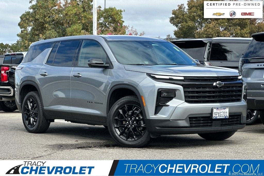 Chevrolet Certified Pre-Owned, Only 10,363 Miles, Like New, Clean Carfax, New Car Customer Trade-In, Non-Smoker. Loaded with Collision Alert, Lane Departure, Power Lift Gate, Seat 8-Persons, Black Painted Wheels, Rear Spoiler, And More Midnight/Sport Edition: Black Grille, Front and Rear Black Chevrolet Bowtie Emblems, Black Traverse Badging, Black Window Moldings, 20-Inch Gloss Black-Painted Aluminum Wheels. Safety Package: Autosense Power Liftgate, Programmable, Hands Free, HD Surround Vision, Intersection Automatic Emergency Braking, Rear Pedestrian Alert, Enhanced Lane Keep Assist w/ Lane Departure Warning, Speed Limit Assist, Traffic Sign Recognition. Driver Confidence Package: Mirrors, Outside Heated, Power Adjustable, Body Color with Turn Signal Indicators, Side Bicyclist Alert, Enhanced Automatic Emergency Braking, Adaptive Cruise Control, and More. Clean CARFAX. Sterling Gray Metallic 2024 Chevrolet Traverse LS FWD 8-Speed Automatic 2.5L DOHCChevrolet Certified Pre-Owned Details:* 24 months/24,000 miles (whichever comes first) Certified Pre-Owned Scheduled Maintenance Plan and 3 days/150 miles (whichever comes first) Vehicle Exchange Program. SiriusXM 3-month trial subscription.* Powertrain Limited Warranty: 72 Month/100,000 Mile (whichever comes first) from original in-service date* Vehicle History* Limited Warranty: 12 Month/12,000 Mile (whichever comes first) from certified purchase date* 172 Point Inspection* Roadside Assistance* Warranty Deductible: $0* Transferable WarrantySee all our inventory at WWW.TRACYCHEVROLET.COM.
