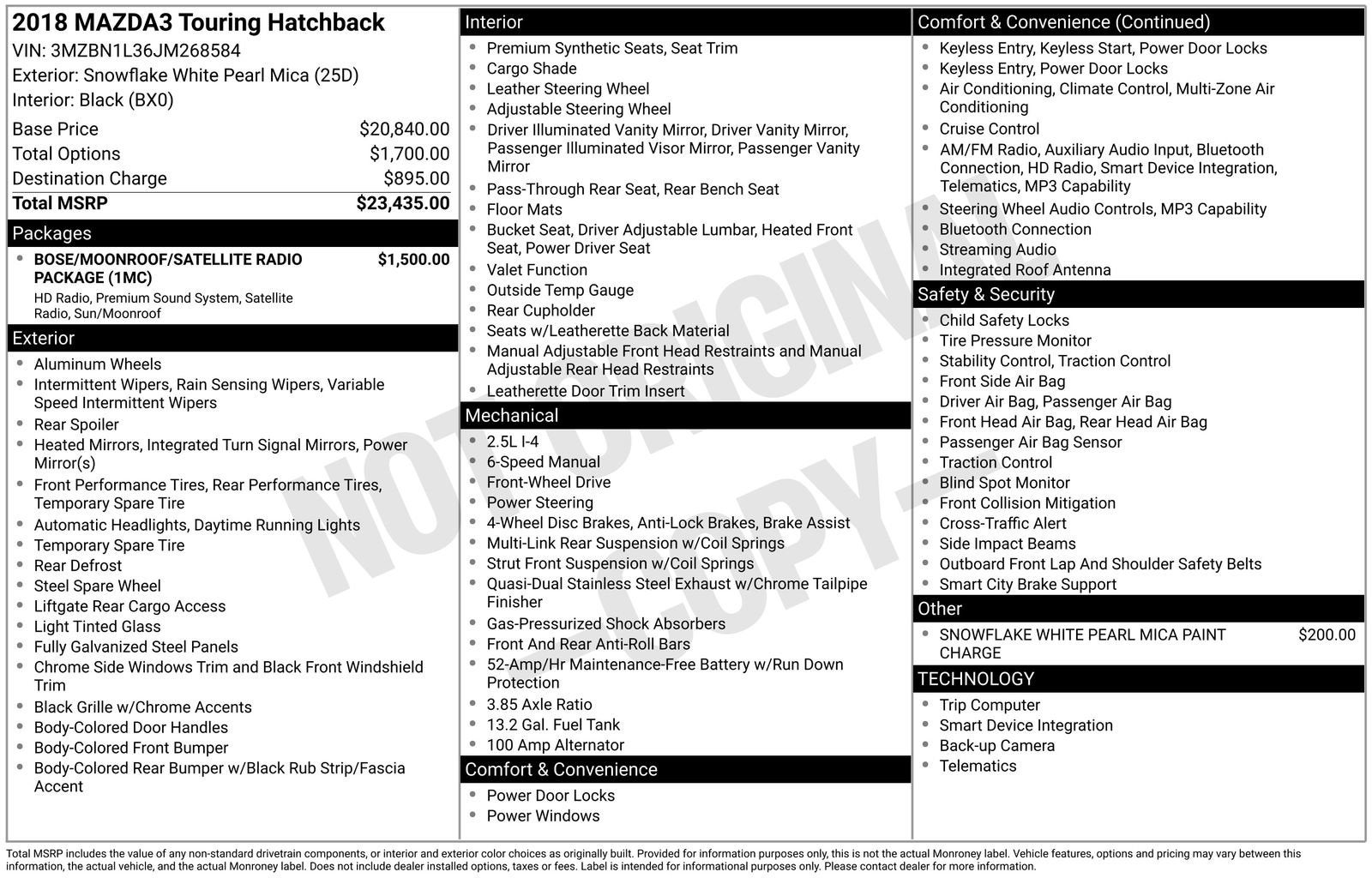 Snowflake White Pearl Mica 2018 Mazda Mazda3 Touring FWD 6-Speed Manual SKYACTIV® 2.5L 4-Cylinder DOHC 16VRecent Arrival! 25/34 City/Highway MPGAwards:* 2018 KBB.com Brand Image AwardsSee all our inventory at WWW.TRACYCHEVROLET.COM.