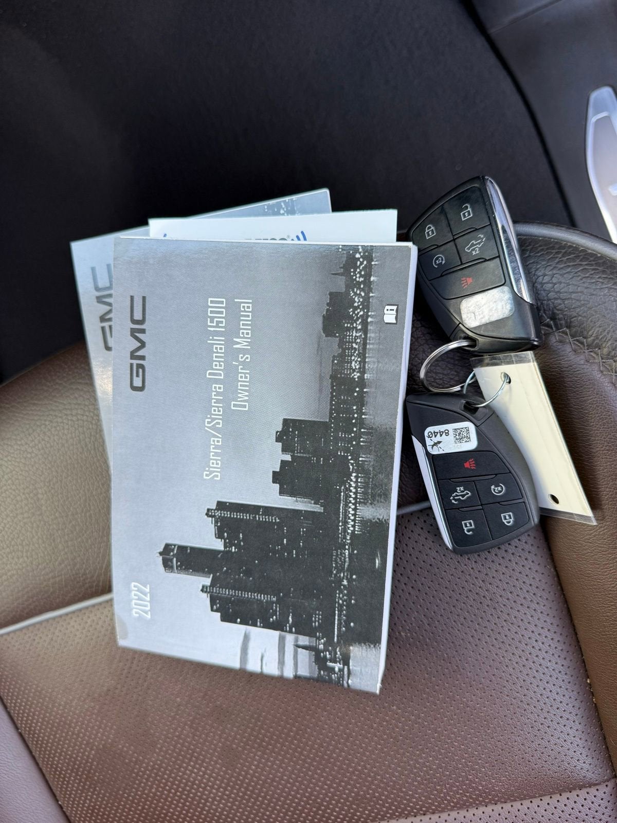 Denali, Immaculate Condition, Like New, Non-Smoker, Loaded with Bose Premium Sound, Google Maps, Leather Seats, Heated and Cold Seats, Dual Power Seats, Spray-In Bed Liner, Tow Package, Premium Wheels, Running Boards, and more.CARFAX One-Owner. Clean CARFAX. White Frost Tricoat 2022 GMC Sierra 1500 Denali RWD 10-Speed Automatic EcoTec3 5.3L V8 10-Speed Automatic, Atmosphere/Brownstone Leather.