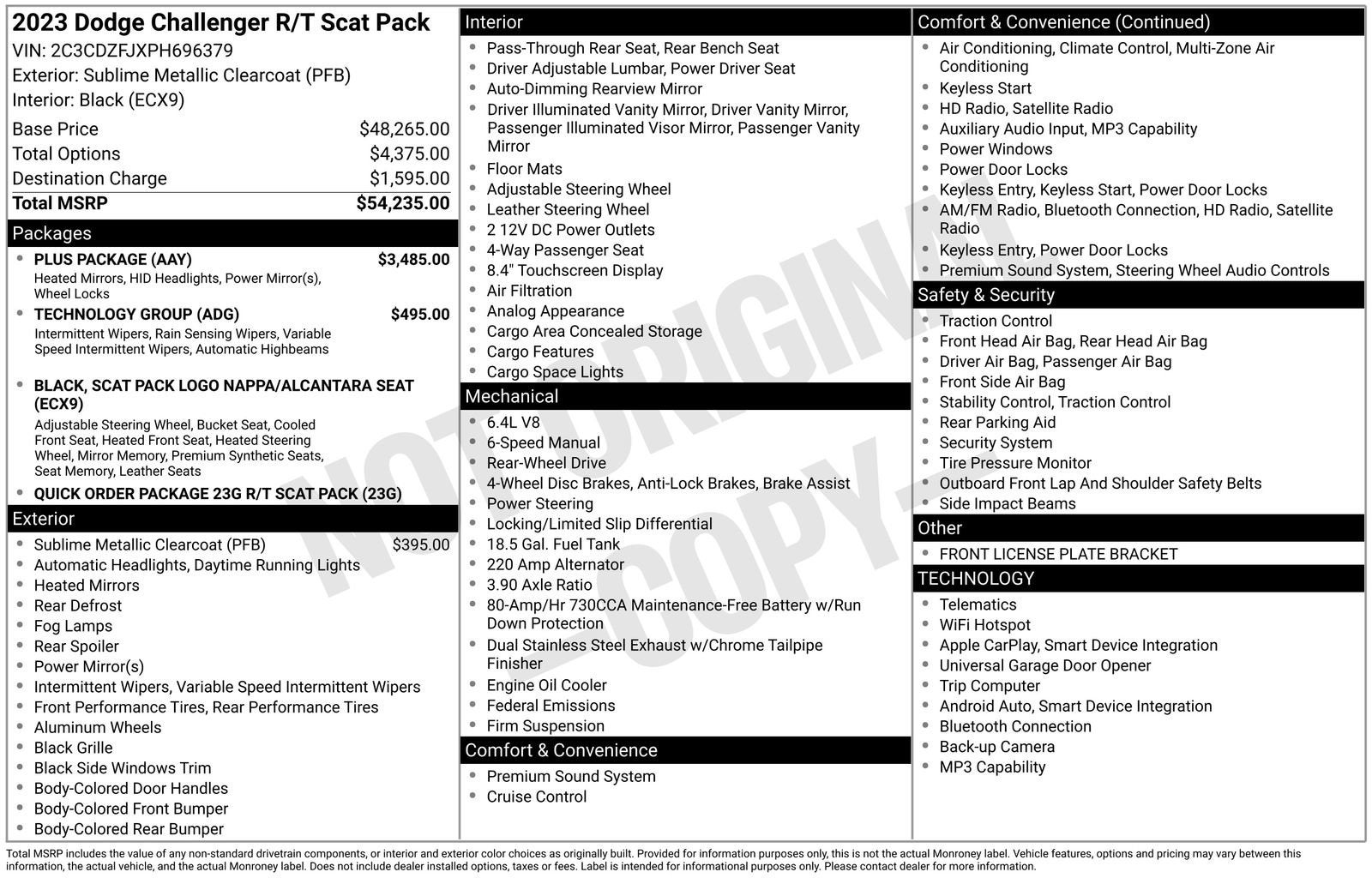 Only 3,350 Miles, Challenger R/T Scat Pack Plus, Like New, One-Owner. Clean Carfax, Non-Smoker. Brembo 4-Piston Fixed Caliper Brakes, Auto High Beam Headlamp Control, Black-Edged Premium Floormats, Exterior Mirrors w/Heating Element, Heated Front Seats, Heated Steering Wheel, High-Intensity Discharge Headlamps, Plus Package, Power Multi-Function Foldaway Mirrors, Power Tilt/Telescope Steering Column, Premium-Stitched Dash Panel, Quick Order Package 23G R/T Scat Pack, Radio/Driver Seat/Mirrors Memory, Rain Sensitive Windshield Wipers, Scat Pack Logo Nappa/Alcantara Seat, S, Technology Group (DISC), Ventilated Front Seats, Wheels: 20 x 9.0 Low-Gloss Granite Crystal, Rear Vision Camera, and More. Sublime Metallic Clearcoat 2023 Dodge Challenger R/T Scat Pack RWD Tremec 6-Speed Manual SRT HEMI 6.4L V8