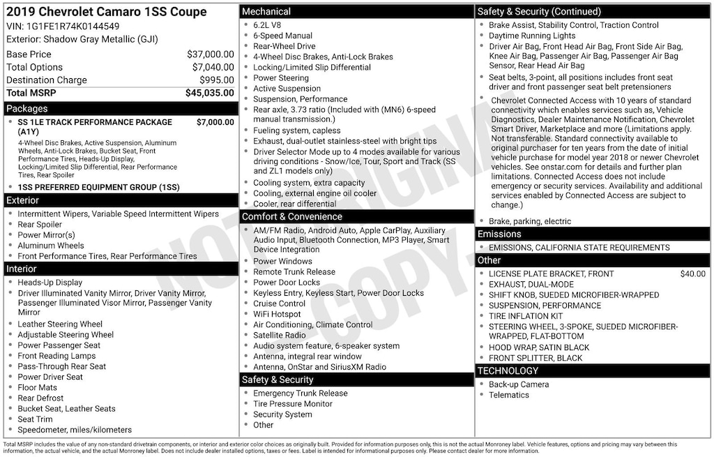 Used 2019 ChevroletCamaro 1SS