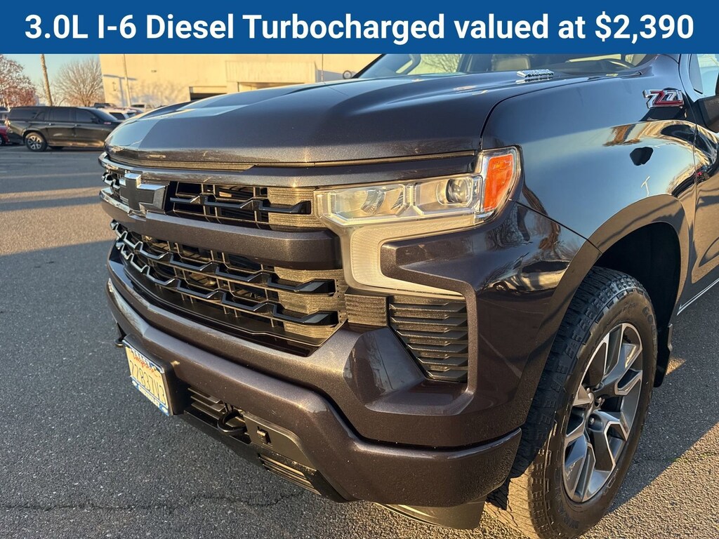 Chevrolet Certified Pre-Owned, RST All Star Premium Package, 4WD Diesel RST 1500, CARFAX One-Owner. Locally Owned, Dark Ash Metallic 2023 Chevrolet Silverado 1500 RST 4WD 10-Speed Automatic 3.0L I Black Leather. Z71 Off Road Package, Protection Package, Power Sunroof, Front Bucket Seats, Dual Exhaust, Twin tube Shocks, Heavy duty Air Filter, Safety Package, Hd Surround Vision, Universal Home Remote, LED Lighting, Front Recovery Hooks, Wireless Charging, Convenience package, All Star Edition, Chevrolet Certified Pre-Owned Details:* Roadside Assistance* 24 months/24,000 miles (whichever comes first) Certified Pre-Owned Scheduled Maintenance Plan and 3 days/150 miles (whichever comes first) Vehicle Exchange Program. SiriusXM 3-month trial subscription.* Warranty Deductible: $0* Limited Warranty: 12 Month/12,000 Mile (whichever comes first) from certified purchase date* 172 Point Inspection* Powertrain Limited Warranty: 72 Month/100,000 Mile (whichever comes first) from original in-service date* Transferable Warranty* Vehicle HistorySee all our inventory at WWW.TRACYCHEVROLET.COM.