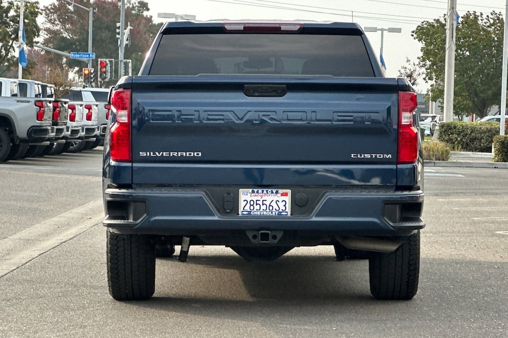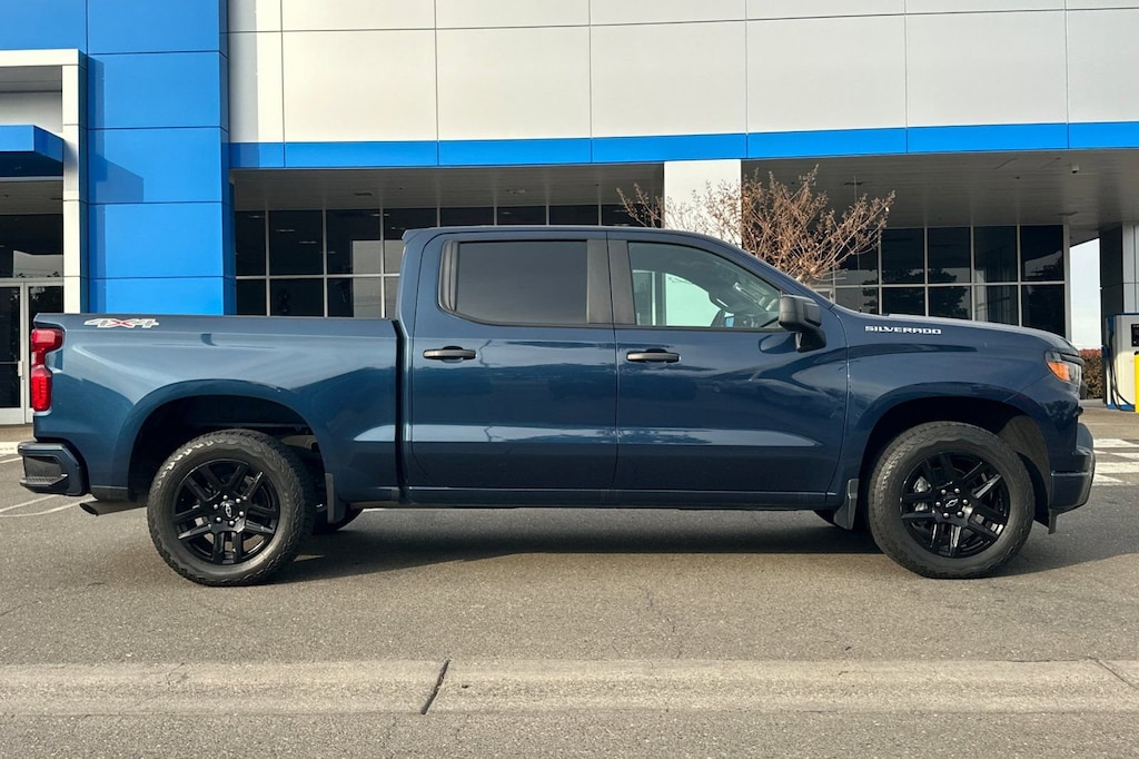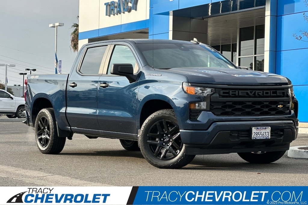 Chevrolet Certified Pre-Owned, 1500 Custom 4WD, Low Miles, Custom Convenience Package, Custom Value Package, 20 Black Painted Aluminum Wheels. Chevy Safety Assist: Automatic Emergency Braking, Forward Collision Alert, Front Pedestrian Braking, Lane Keep Assist W/Lane Departure Warning, Following Distance Indicator, Intellibeam-Auto High Beam, Rear Vision Camera, Teen Driver Mode, Tire Pressure Monitoring with Tire Fill Alert Performance & Mechanical. Chevrolet Infotainment 3 7 Diagonal Color Touchscreen Additional Features For Compatible Phones Include: Bluetooth Audio Streaming Voice Command Passthrough To Phone, Wired Android Auto & Wired Apple CarPlay, 120v Power Outlet In Cargo Bed & Instrument Panel, USB Ports, Driver Information Center, Remote Keyless Entry, Push Button Start, Remote Start, Content Theft Alarm, Body-Color Styling Theme, Cornerstep Rear Bumper, 12 Tie Downs In Cargo Bed, Led Cargo Area Lighting, Ez Lift, Power Lock, & Release Tailgate, Power Adjustable Heated Mirrors, Halogen Reflector Headlamps, Incandescent Tailamps, Deep-Tinted Windows, Rear-Window Defogger, Front Recovery Hooks, Autotrac Transfer Case, Electronic Cruise Control, 220 Amp Alternator, Stabilitrak W/ Trailer Sway Control & Hill Start Assist, Trailering Package With Hitch Guidance, Brake Pad Wear Indicator, and More. Clean CARFAX. Northsky Blue Metallic 2023 Chevrolet Silverado 1500 Custom 4WD 8-Speed Automatic 2.7L Turbo 8-Speed Automatic, Jet Black Cloth.
