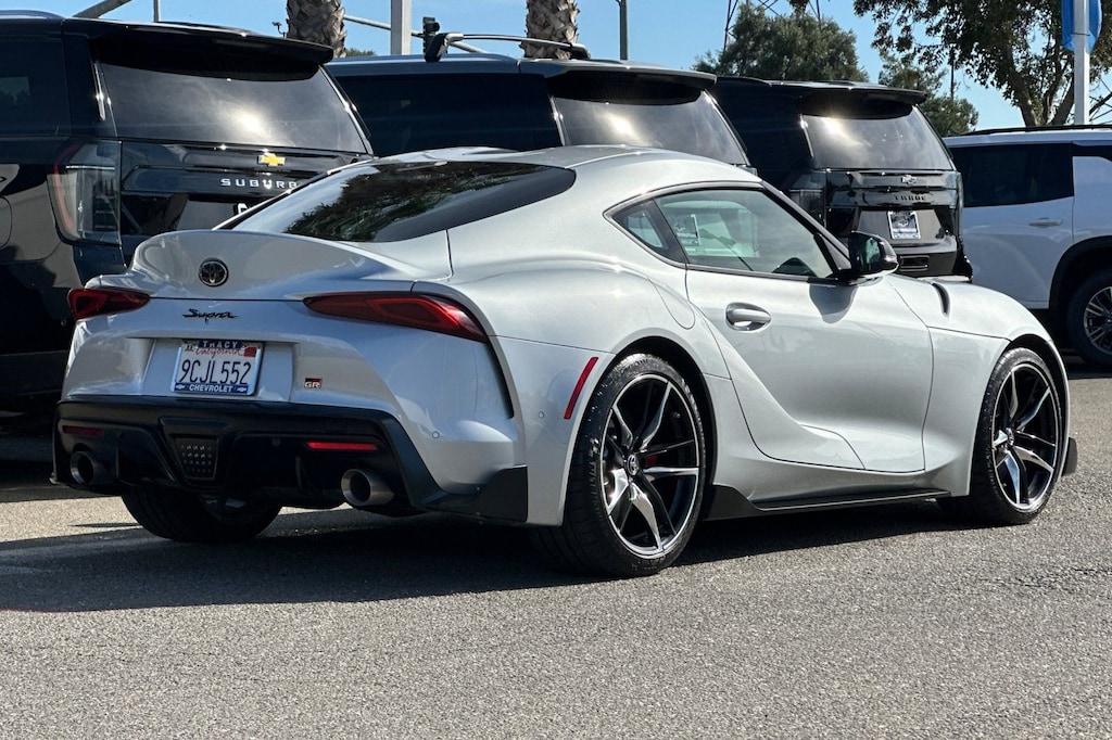 Technology & Premium Package: Full Color Head-Up Display (HUD), Qi-Compatible Wireless Charging Tray, Radio: AM/FM stereo w/500W JBL HiFi Sound System, Red Brake Calipers, 3.0 Premium Mark 5 Supra, B58 Engine, 382 Horsepower, 8 speed Transmission, Carbon Fiber Mirror Caps, Safety Assistance Package, Apple Car Play, Android Auto, Sport Mode, Digital Display, Paddle Shifters, Heated Seats, I drive System, Inline Six, 25MPG Combined, Fast Sports Car, Twin Scroll Turbo, Brake Assist, Brushed Exhaust tips, Rear Diffuser, LED Lighting, Clean CARFAX. 2022 Toyota Supra 3.0 RWD 8-Speed Automatic 3.0L I6 Turbocharged, Odometer is 18375 miles below market average! 22/30 City/Highway MPGCARFAX One-Owner. Clean CARFAX. Turbulence Gray 2022 Toyota Supra 3.0 RWD 8-Speed Automatic 3.0L I6 Turbocharged